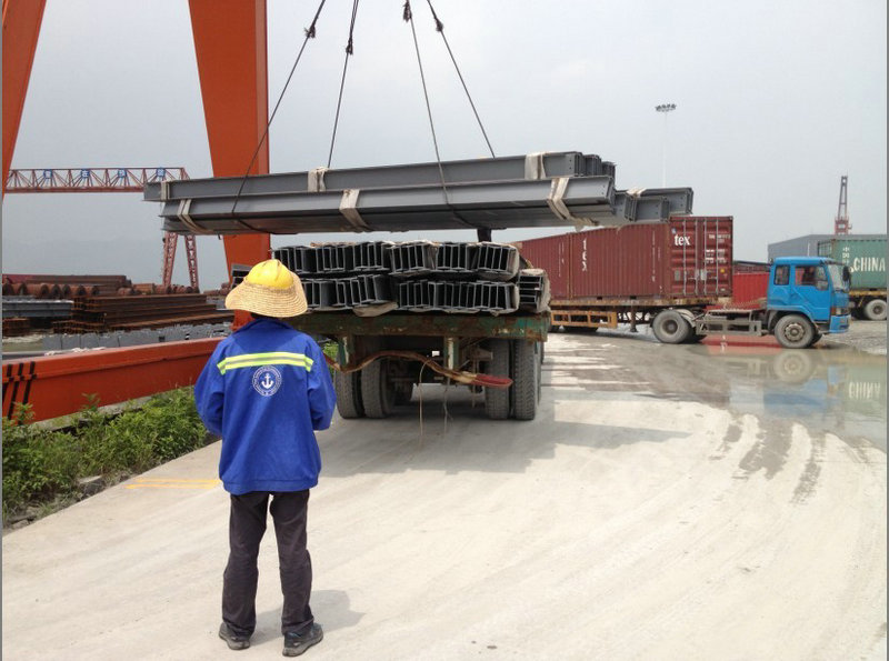 2)散貨船 特殊情況,某些大型建筑構(gòu)件尺寸超過了40'HQ 和40'開頂柜的內(nèi)部尺寸,此時(shí)我們建議客戶將大型建筑構(gòu)件使用大卡車,平板拖車等由工廠吊運(yùn)到碼頭,然后由碼頭吊運(yùn)上大船,因此客戶在訂艙時(shí)要向船東訂散船艙位。我們將配合客戶,提供準(zhǔn)確的貨物結(jié)構(gòu)尺寸和重量,以便訂到合理的艙位。