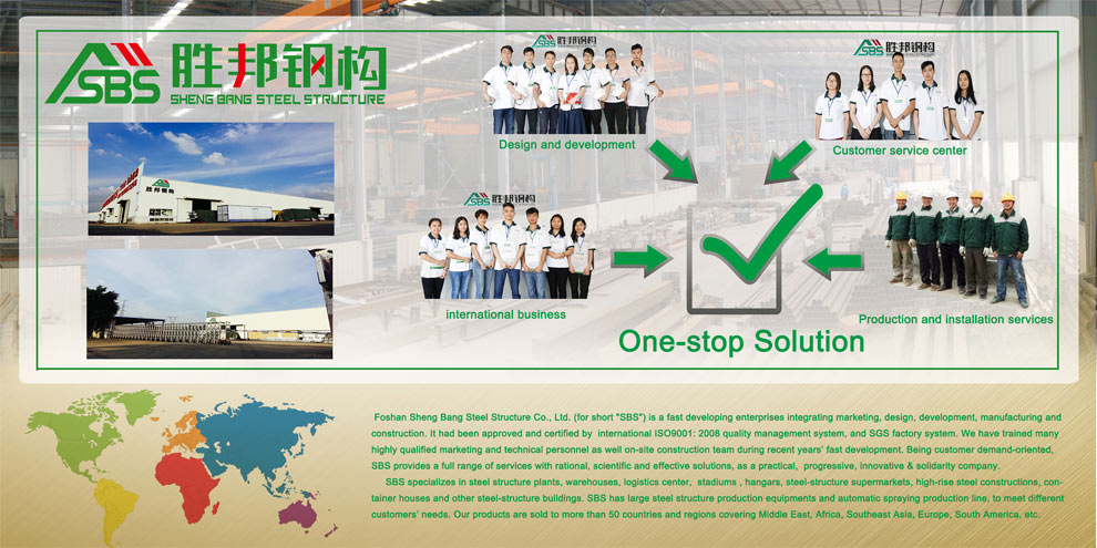 佛山市勝邦鋼結構有限公司(簡稱“勝邦鋼構”www.applebabes.com)是一家集合營銷、設計、研發(fā)、制造、施工為一體,專業(yè)承建鋼結構建筑的發(fā)展型企業(yè)。并通過國際ISO9001:2008質量管理體系認證和SGS工廠體系認證。近年的飛快發(fā)展,培養(yǎng)了一大批高素質營銷、技術人才和現(xiàn)場施工隊伍,勝邦以客戶需求為導向,為客戶提供合理的、科學的、有效的解決方案,以務實進取、不斷創(chuàng)新、團結一致的精神為客戶提供全方位的服務。